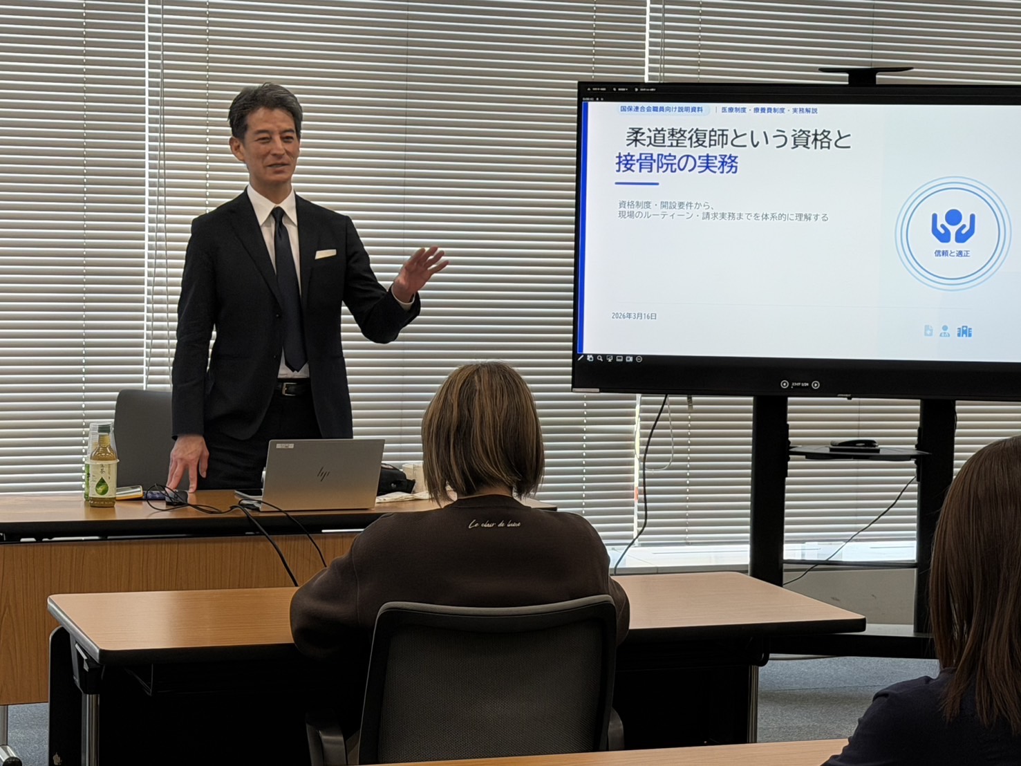 令和8年3月16日、東京都国民健康保険団体連合会主催の「柔道整復療養費に関する職員研修会」において、公益社団法人東京都柔道整復師会 会長 瀧澤一裕が講師として出席いたしました。