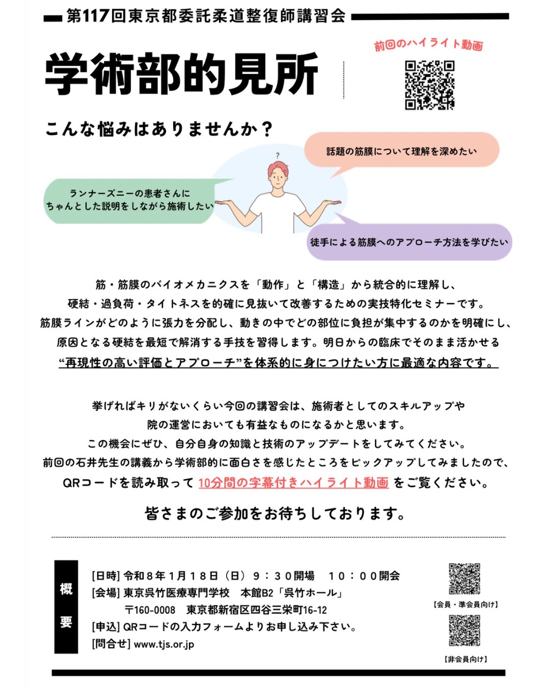 第117回東京都委託柔道整復師講習会 ー学術部的見所ー